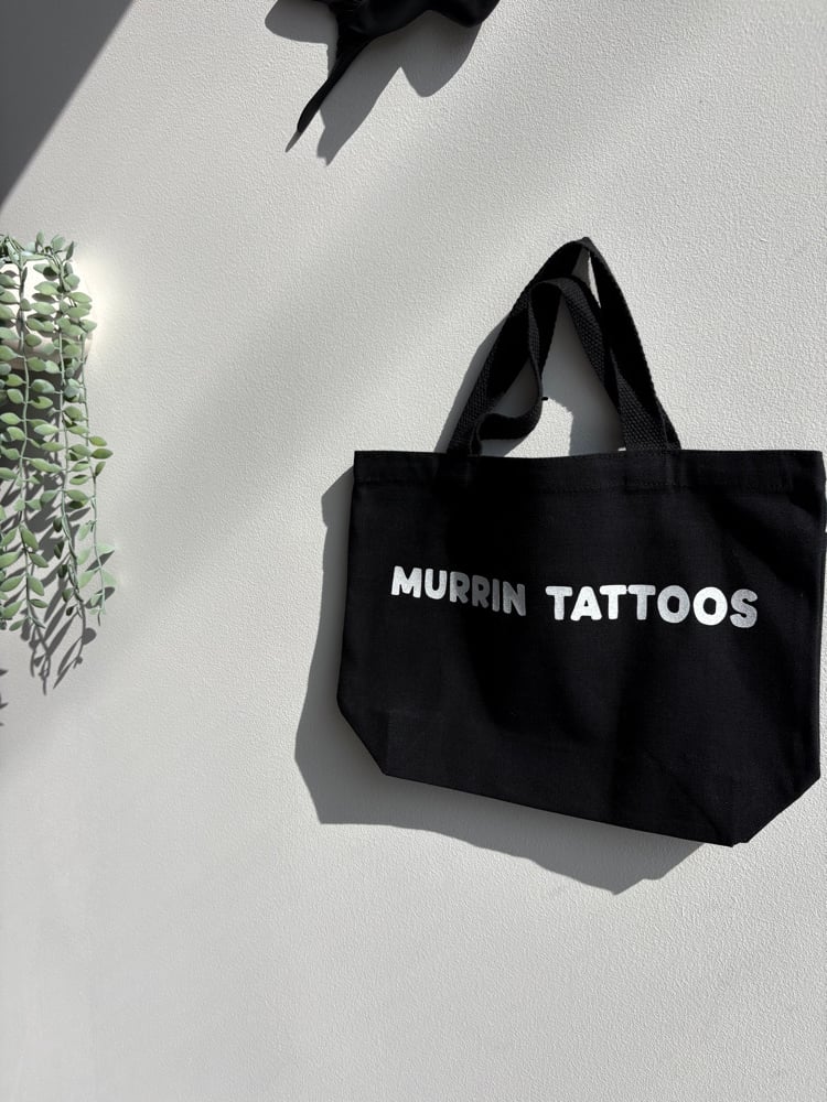 Small canvas bag with white glitter designs and pockets on the front :)